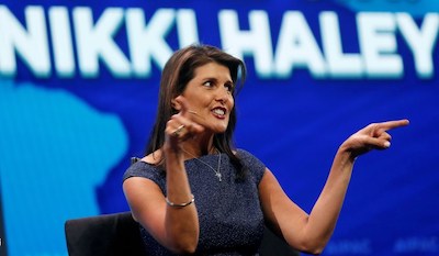 As MBD points out, and the illustration above indicates, Haley has a vested interest in pointing both ways. Still, we recall Tillerson was never in synch with his President’s policies, leading us to give Nikki the benefit of the doubt…for now.
