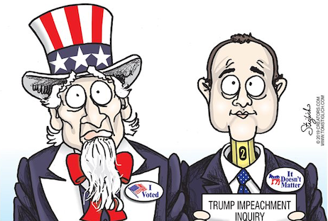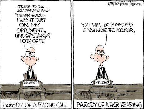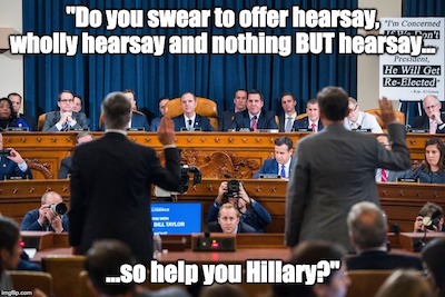 Since we’re on the subject of the Ukraine Kangaroo Kourt, we present two videos which prove Adam Schiff-for-brain’s inquisition has as much credibility as a sworn statement from a Clinton.
