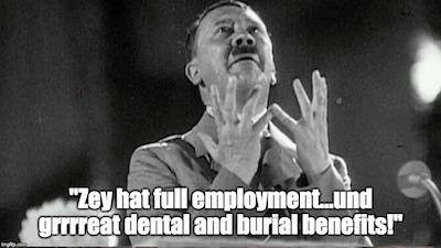Adolf Hitler blames Holocaust charges for ruining his legacy, brags about creating defense sector employment opportunities for Jews ‘first‘