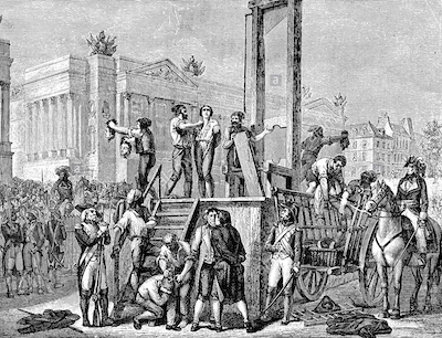 “Henceforth, anyone denounced for “Slandering patriotism,” “seeking to inspire discouragement,” “spreading false new” or even “depraving morals, corrupting the public conscience and impairing the purity and energy of the revolutionary government” could be brought before the Revolutionary Tribunal. That court could issue only one of two sentences: acquittal or death. To expedite the march of revolutionary justice, no witnesses would be allowed to be called nor could the accused have a defense counsel. Were not the jurymen, after all, good citizens, capable of coming to a fair and unbiased verdict on their own judgment?“