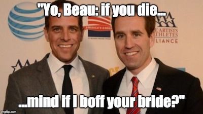 “…on Monday when newly-filed court documents revealed Hunter Biden used his older brother, Beau Biden’s, death to hide the fact that he checked into a rehab center in Arizona. He used the names Joseph R. Beau Biden III and Joseph McGee as his aliases, the Washington Examiner reported.The discovery was made when police found suspicious items inside a Hertz rental car on Oct. 28, 2018.