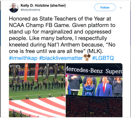 In a tweet recounting the event, Holstine quoted Rev. Martin Luther King Jr., writing: “No one is free until we are all free.“