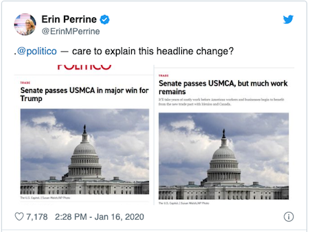 Speaking of corrections, the following irrefutable evidence of some last minute headline hijinks at Politico demonstrates why the term “fake news” was coined in the first place:
