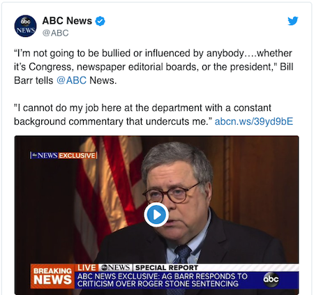 “I think it’s time to stop the tweeting about Department of Justice criminal cases.”