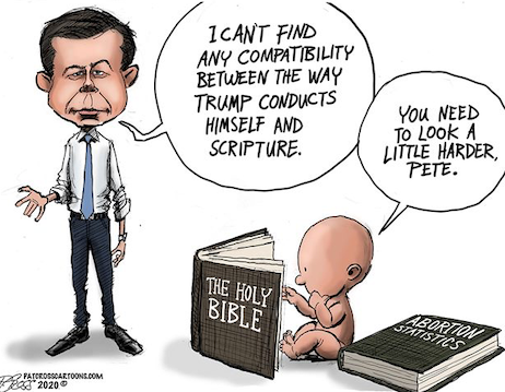 Buttigieg is certainly the perfect embodiment of one section of Scripture, Matthew 23:27 to be precise: “Woe to you, teachers of the law and Pharisees, you hypocrites! You are like whitewashed tombs, which look beautiful on the outside but on the inside are full of the bones of the dead and everything unclean.”
