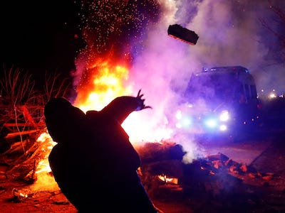 Since the early morning, several hundred residents of the village of Novi Sanzhary in Ukraine’s central Poltava region had cut the road to a sanitarium intended to host the evacuees, fearing they could become infected. Demonstrators, some of whom appeared drunk, put up road blocks, burned tires and clashed with riot police who moved to clear access. One protester tried to ram police lines with his car…”