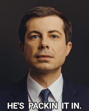 …whichever. As for Tom Steyer and Mayor Pete, don’t let the door hit you in the butt on your way out…though it might afford the pompous, self-righteous Pete…