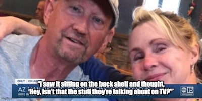 “In their 60s”: sorry, but is that a reference to their ages or IQs?!? Mark these two down as early favorites for a Darwin Award, though, as Super T observed, the cocktail certainly prevented the husband from contracting COVID-19.