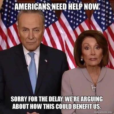 Add on $35 million for the Kennedy Center, $1 billion for broadband access and Obamaphones for the “poor”…along with financial support for PBS and student loan forgiveness…and you get the real picture. To hell with the country, they’re focused on enacting otherwise unpopular Progressive political policies, as these are all items the Dims couldn’t possibly pass in the normal course of business.