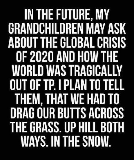 …until you are utterly under their control and totally dependent uponthem for your every need…including toilet paper and hand sanitizer.