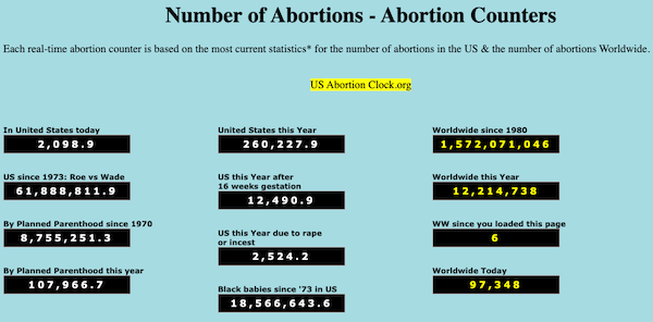 Since 1973, almost as many unborn babies have been slaughtered in the United States alone than the number of people killed in all of WWII. In roughly the same time span, Planned Parenthood has exterminated nearly 50% more innocents than the Nazis did Jews. Worldwide since 1980, more babies have been sacrificed on the altar of abortion than the current population of China. It should be noted, in a perverse irony, the ChiCom’s abhorrent “One Child” policy (one of the VERY FEW things Joe Biden understands!) significantly contributed to that incomprehensible statistic.