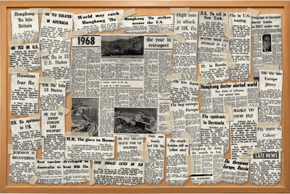 As Bojan Pancevski in the Wall Street Journalpoints out, “In 1968-70, news outlets devoted cursory attention to the virus while training their lenses on other events such as the moon landing and the Vietnam War, and the cultural upheaval of the civil-rights movements, student protests and the sexual revolution.”