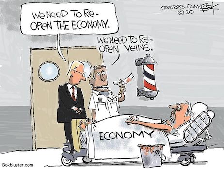 “The faster we reopen, the lower the economic cost — but the higher the human cost, because the more lives lost,” he said. (With no supporting empirical data whatsoever!!!)“That, my friends, is the decision we are really making.”