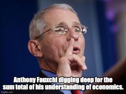 Seriously, the good doctor could at least admit there is no way the country can stay in lockdown indefinitely. And while he’s at it, he might at least acknowledge there’s this thing called “the economy“, his self-admitted ignorance about which, his status as “a scientist, a physician, and a public health official” notwithstanding, still doesn’t excuse his utter ignorance of the impact his advice has on the nation.