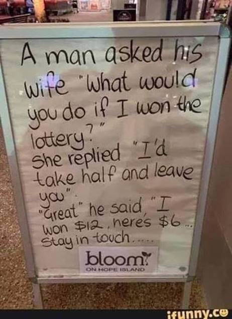 …and this series of mostly spousal-related humor from our brother Rob: