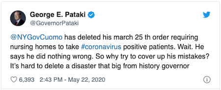 The New York Department of Health and Cuomo’s office did not respond to requests for comment as to why the order was deleted…”