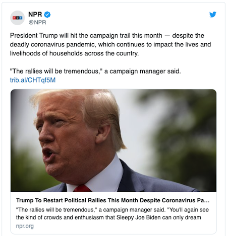 Evidently the potential spread of the Wuhan virus isn’t a factor at mass protests, rioting, arson, looting and murder, but is of great concern at Trump rallies leading up to the election.