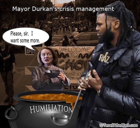 Young protesters in Seattle may “occupy” a sector of that once-respected city; they may scream “police brutality” and call for the police department to be “defunded.”Their demands, however, would amount to little were it not for the city’s clueless Mayor Jenny Durken, who lauded the young occupiers as “patriots,” and her namby-pamby police chief, Carmen Best, who decided that barricades which had protected one of her department’s precinct headquarters should be removed as a “gesture of trust” to the mob…”