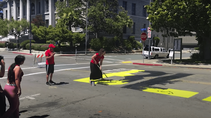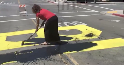 “Actually listen to one another”: so painting “Black Lives Matter” on a public thoroughfare is permitted speech deserving of debate, while covering it up is a hate crime, hence a viewpoint unworthy of consideration.