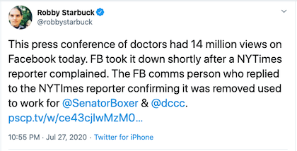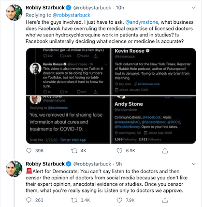 Robby Starbuck tweeted it well: You can’t say listen to the doctors and then censor the opinion of doctors from social media because you don’t like their expert opinion, anecdotal evidence or studies. Once you censor them, what you’re really saying is: Listen only to the doctors we approve.
