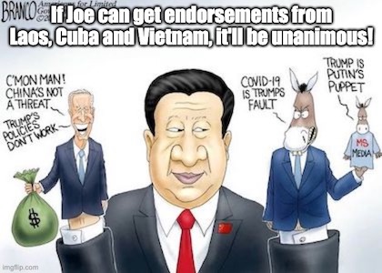 It’s Monday, August 31st, 2020…but before we begin, as this headline from The Washington Times forwarded by James Nichols confirms, the Dimocratic ticket just received an important endorsement, as the…