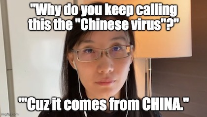 Still, she was understandable enough for Twitter to suspend her account, and the wrath of the Deep State and scientific establishment to descend upon her. Any chance the scientific establishment’s wrath could be tied to the untold billions they collectively receive from the ChiComs?