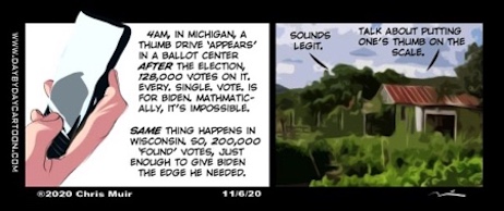 (1). How is it each and every time there’s a delayed ballot count or “computer glitch“, the votes involved always favor the candidate with a (D) after their name?