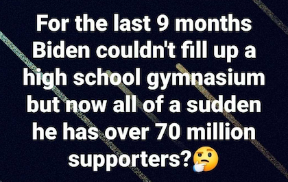 Many reporters at press conferences that took place in Arizona, Pennsylvania, and Michigan on Thursday asked his political appointees and supporters for evidence of the wide-scale problems they alleged occurred.(The same “reporters” who refused to ask Biden about or report on his son Hunter’s laptop!) If it is just the mathematical evidence Americans are looking for, there is endless evidence. Here are just the facts…”