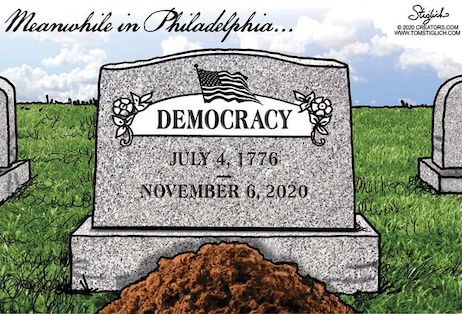 Second, it hasn’t even been a week since the election, and despite clear evidence of voter fraud in every contested state and The Donald not yet having availed himself of his legal remedies, Trump is being pilloried in the press for not conceding…