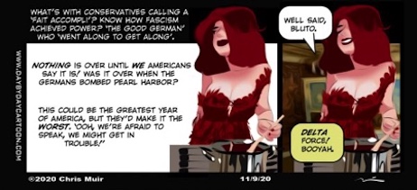 Moving on, as we’ve often said of late, it ain’t over ’til the fat lady sings; and while time’s not yet of the essence for Trump (Al Gore’s concession came December 13th), the date by which battleground states are required to certify their election results grows ever closer. And despite stories of election irregularities flying with the speed and frequency of the French army before the Germans at the Marne in May of 1940, we’re afraid the SCOTUS will need something more concrete than rumor and innuendo to overturn the results of the recent election…though we’ve no doubt whatsoever, Neil Cavuto’s willful blindness notwithstanding, the Dimocrats cheated more often than Bill Clinton on a trip to Epstein Island.