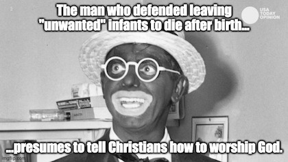 So much for the Gospel According to Governor Blackface, which undoubtedly relies on the same translation as of the Scriptures as Groper Joe’s Book of Palms.