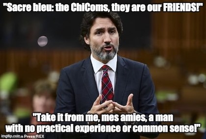 According to the memos, the training was then canceled by Chief of Defense Staff Jonathan Vance due to concerns that China could use the trip to obtain information from Canada. But Trudeau was displeased about the cancelation, because he thought it would look like retaliation over China’s detention of two Canadian nationals, and insisted Chinese officials be let down gently, the memos show. (After all, no true Socialist fellow traveler wants to offend the ChiComs!)