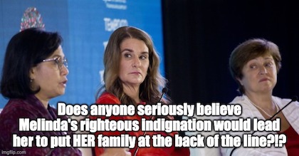 We’d suggest if Melinda and Bill are so anxious for the Third World to receive the Wuhan vaccine in what they determine to be a timely fashion, how ’bout they use their billions to open their own factory under license from one of the pharmaceutical companies which has developed the vaccine and manufacture it solely for use as they see fit!