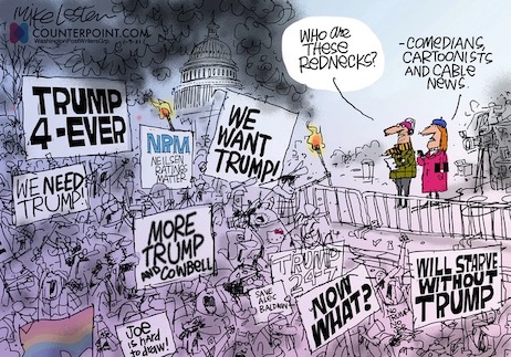 One other quick point, if we may: most if not all of those comparing last Wednesday’s breaching of the all-too-penetrable defenses of the Capitol by a largely unarmed mob to the attack by some 44 artillery pieces and mortars on Fort Sumter describe the participants as “Trump supporters” or “defenders of the president” (Ms. Bernstein’s phraseology “pro-Trump supporters” being redundant, as an “anti-Trump supporter” or “pro-Trump adversary” would both be oxymorons). Which we can only assume includes us, though we only voted for The Donald in the general elections. We cast our ballot for Ted Cruz in the 2016 Republican primary, and didn’t bother to vote in the 2020 primary, as Trump was a lock for the Republican nomination. Fact is, we likely wouldn’t EVER have voted for him if the absolute a*sclowns heading both parties and the MSM hadn’t forced us to do so.