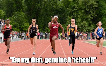 Were we the bitter type…or not possessed of the spirit of Christian charity…we’d wish all those who voted for this doddering old fool might live to see every one of their female offspring’s athletic careers derailed by the impact of such all-too-predictable Progressive preposterousness.