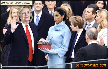 Because if a President is impeached twice and convicted, his name and visage is to be stricken from all public records, and the original opposing candidate – Hillary Clinton, in this case – will be digitally inserted into the history books:
