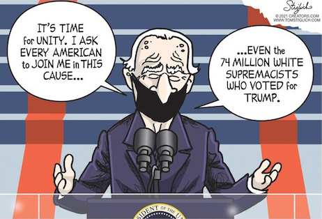 Regarding David French’s tweet, and ignoring for the moment the obvious illegalities in the election, four things are true: (1) A “handful” of executive orders? Give him time; after all, the clown’s only been in office since last Wednesday; (2) Replacing a “deranged liar” with a demented, pathological prevaricator who’s made practicing deception and corruption the primary features of a 47-year political career is a trade up?!?; (3) Forgetting for the moment the mob who breached the Capitol’s curiously deficient defenses hardly constituted the Visigoths sacking Rome, how can one incite those who’d preplanned their assault?; and, (4) “Perspective”? To what perspective is French referring? Perhaps that of the female athletes whose hopes and dreams will henceforth be dashed by mentally-ill men and boys seeking some perverted form of self-satisfaction? Or maybe David means the millions of babies who will be sacrificed on the altar of abortion around the world over the coming years thanks to 46*’s slavish support for the unrestricted slaughter of the unborn.