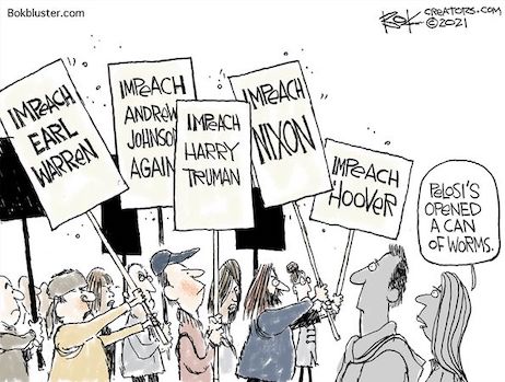 “You want to play poker with a Democrat, because you can always count on them to overplay every single hand they’re dealt. It’s like a compulsion – whatever they have, you can count on them to exaggerate or freak out and blow it up into something more than it is, no matter what it is. After four years for Democrat pearl-clutching over every Trump tweet, I’ve become pretty numb to the left-wing outrage machine. With this second impeachment, AFTER Trump has left office, I’ve lost all interest in not only what Democrats are whining about now, but in anything and everything Democrats do, say, or want.