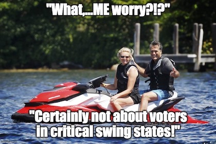 Hey, Romney’s kids wanted Daddy at the lake; all it may have cost him was the presidency, while the rest of us suffered four more years under The Dear Misleader. Only a certain amount of hubris…or a blatant disregard for appearances…