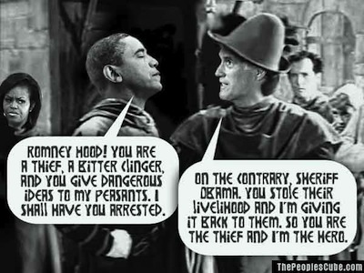 As he escalates his class war re-election campaign, President Obama has taken to calling Mitt Romney’s economic plan “Robin Hood in reverse” or “Romney Hood.” The charge is that even though Mr. Romney is proposing to cut tax rates for everybody across the board, Mr. Romney will finance this by imposing a tax increase on the middle class. His evidence is a single study by the Tax Policy Center, a liberal think tank that has long opposed cutting income tax rates. (Strikingly similar in substance to Hairball Harry’s evidence Romney paid no taxes for 10 years.)