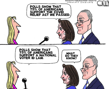 (6). The Journal‘s Kim Strassel provides a detailed look at how Mitch McConnell’s “scorched-earth Senate” might function. Or, to put it more accurately, malfunction, as she insightfully observes, “The filibuster isn’t the problem, and the Senate isn’t “broken.” All that stands in the way of legislation is a Democratic majority unwilling to compromise on any aspect of a radical agenda.”