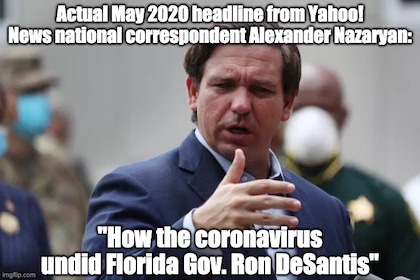 …after 12 months in which he was pilloried as a reckless executive driven more by ideology than science, dogged by images of crowded beaches and bars and derided as “DuhSantis,” “DeathSantis” and “DeSatan,” Florida has fared no worse, and in some ways better, than many other states — including its big-state peers.