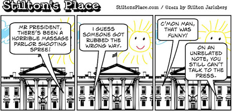 …Considering, as Tucker points out in our Video of the Day (accessible through link #2 immediately below our Quote of the Day at the top of the page), two of those shot were of neither Asian nor Pacific Islander heritage, so why would anyone but massage parlor workers be seriously affected by the shootings?