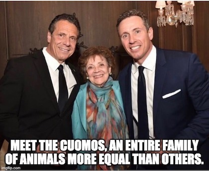 Because while Cuomo was telling New Yorkers that the virus was the “great equalizer” and invoking the cliché that “we’re all in this together,” he and his administration were pushing his family members and closest associates to the front of the line for testing…”