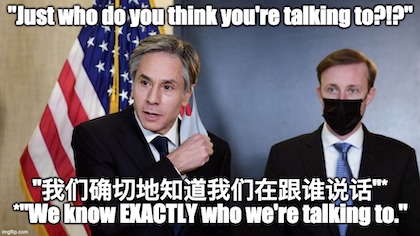 “Last week in Anchorage, Alaska, Chinese diplomats dressed down Biden Administration Secretary of State Antony Blinken and National Security Advisor Jake Sullivan. Both seem stunned by the Chinese broadsides.