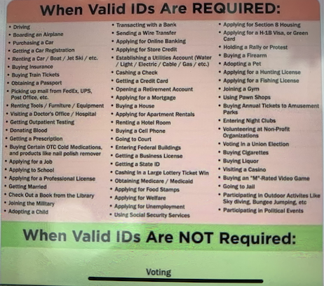 As regards not only the wisdom, but fairness of requiring a picture ID in order to vote, here’s a helpful primer forwarded by G. Trevor: