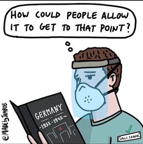 Moving on, Marcus Aurelius forwarded the ideal t-shirt for those unwilling to knuckle under to 46*’s “vaccine-or-else” edict: