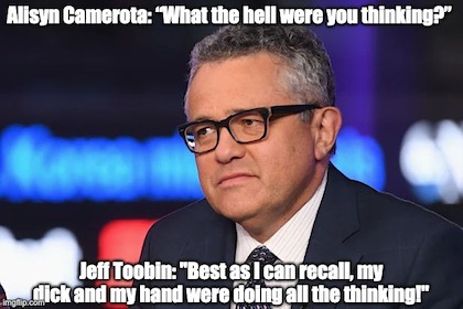Once more demonstrating if it weren’t for double standards, Jeff Zucker’s network would have no standards at all. Toobin either has pictures of Zucker with a donkey in Tijuana, or there’s a dramatic dearth of biased chief legal analysts. And can anyone say “White privilege”?!?