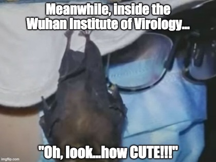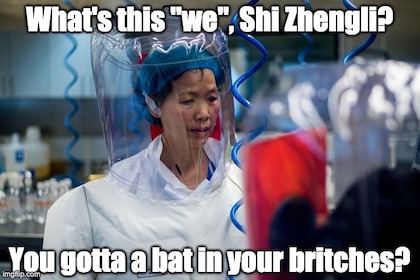 Tut, tut: does the benighted Mr. Geraghty not understand the all-knowing, great and powerful Dr. Faux Chi himself declared the potential benefits of the research his own organization funded…but which Dr. Shi assures us (wink, wink!)…
