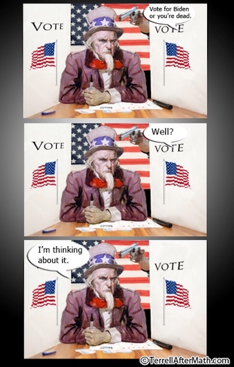 (6). Courtesy of James Nichols, Zero Hedge‘s Tyler Durden reports on the instructions the Big Guy issued to his vaccination police: “Ignore no-soliciting signs, use your script“.